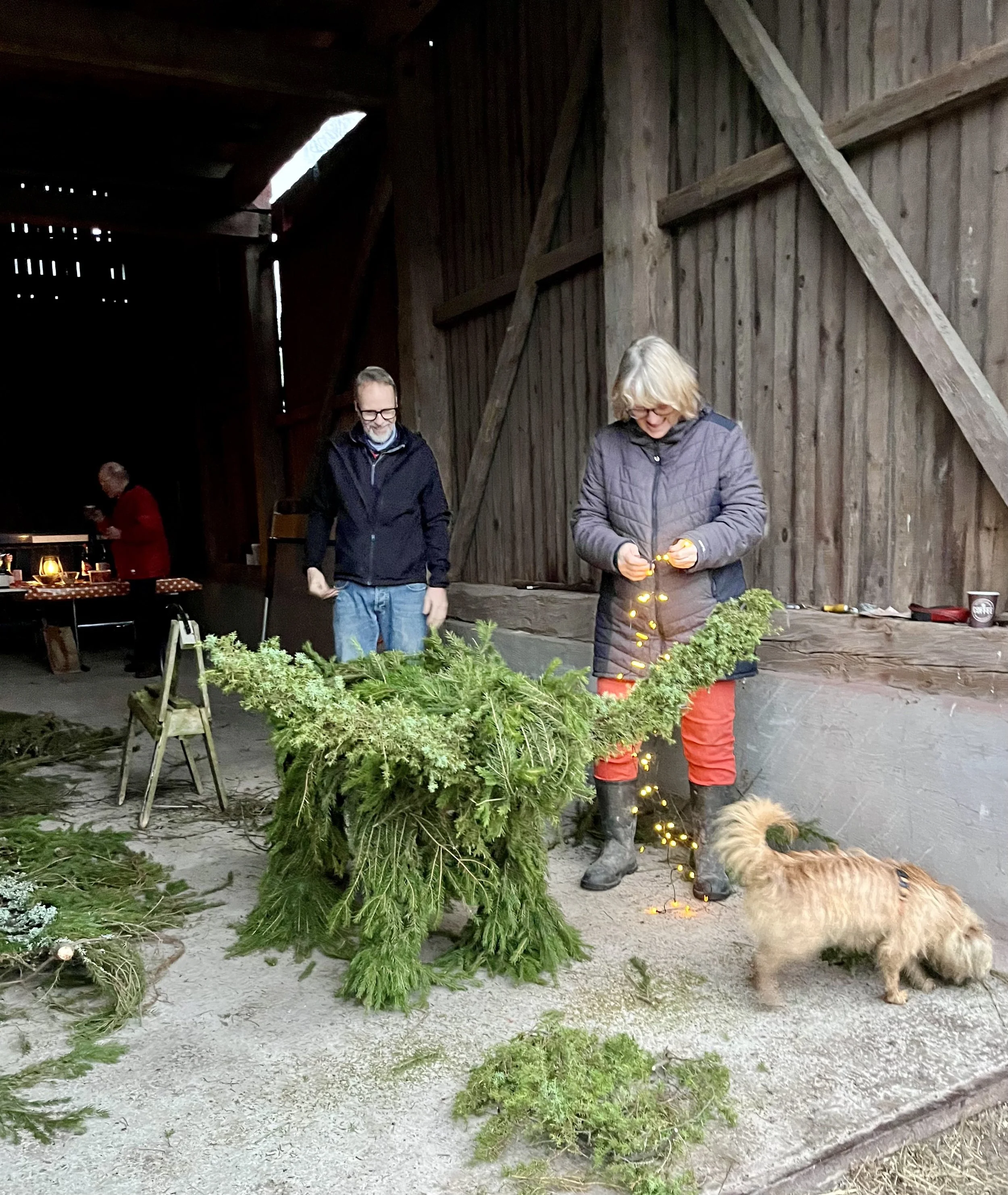 Vi träffades (12 personer) hos Rhiannon och byggde tillsammans Julkon “Julfina” ! Många hjälpte till och det var roligt att se hur det blev.