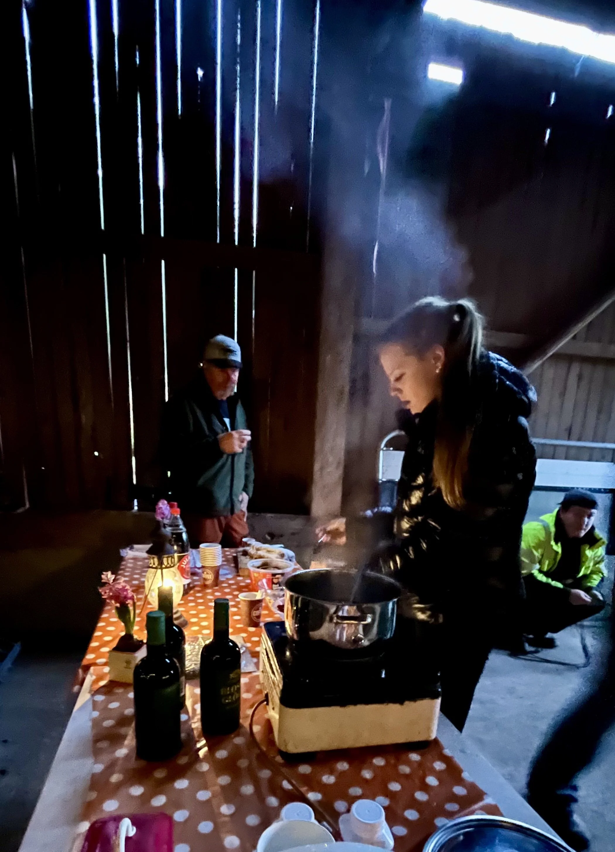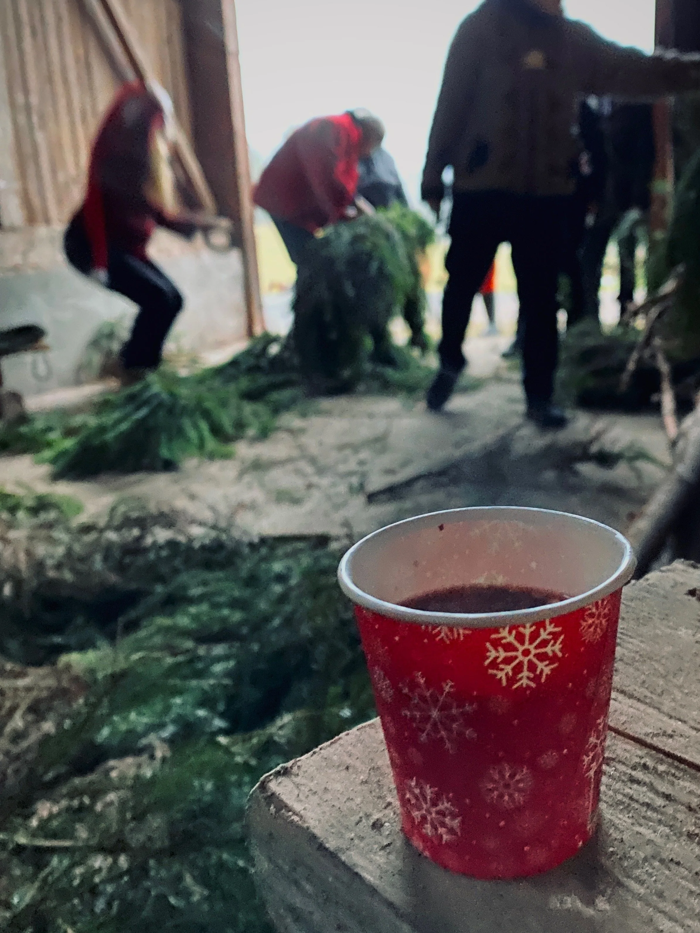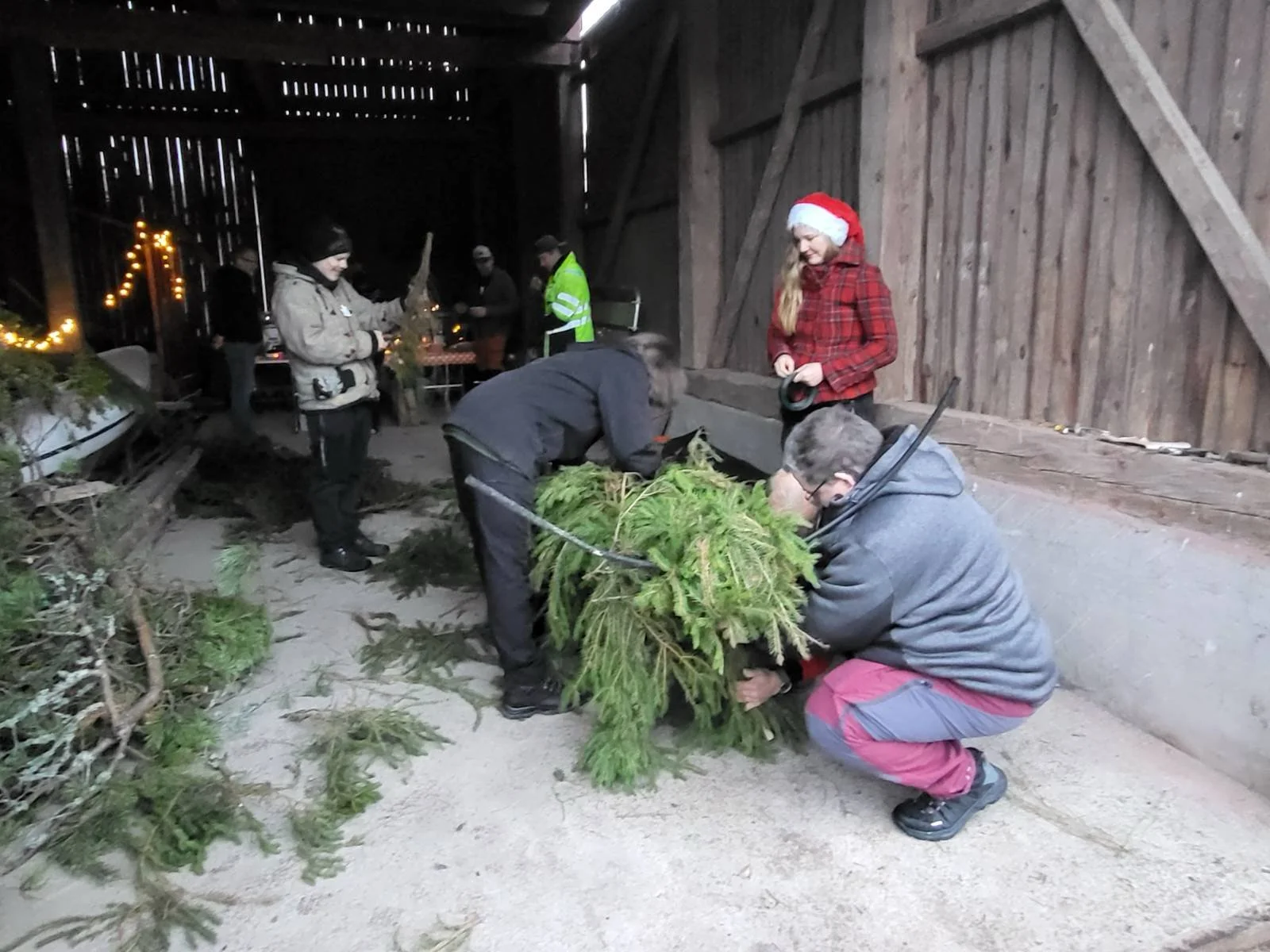 Rhiannon och Thomas hade förberett väl med grangrenar, tråd och verktyg. Även kons ben var färdiga!